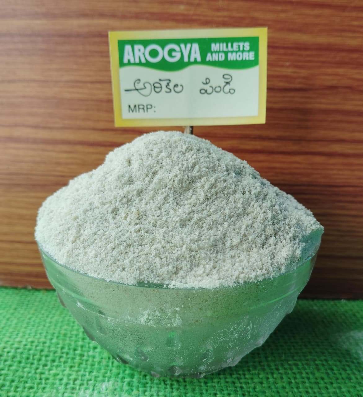 Arikelu Flour is a fine, nutrient-packed flour made from 100% whole Kodo Millet (Arikelu). This naturally gluten-free flour is an excellent source of fiber, protein, iron, and essential minerals, making it a wholesome alternative to traditional wheat flour.