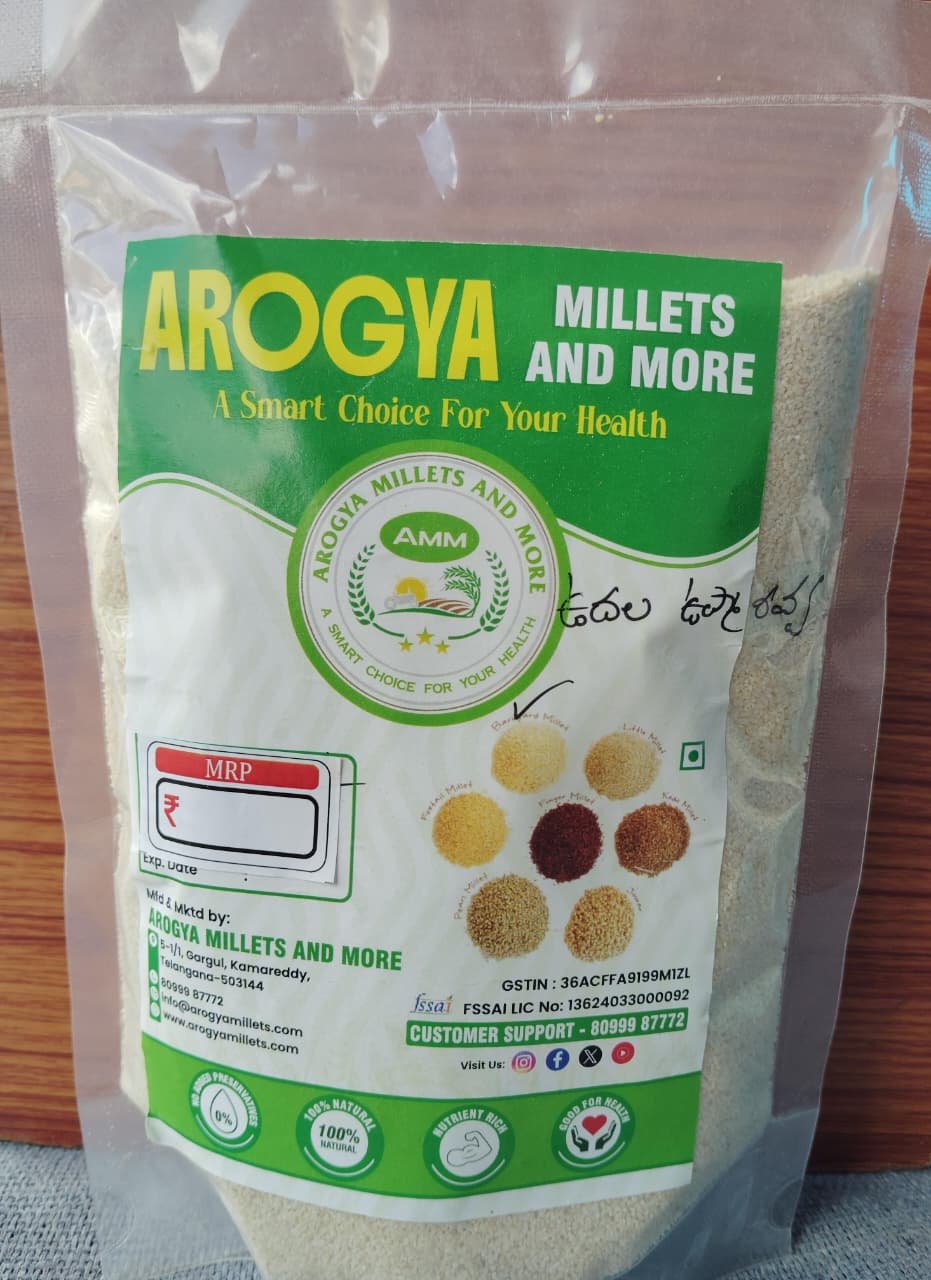 Udalu Upma Ravva is a coarse semolina made from unpolished Barnyard Millet (Udalu) — a traditional, gluten-free grain known for its light texture, high fiber, and low glycemic index. This millet rava is ideal for preparing upma, khichdi, or porridge that’s both delicious and nourishing.