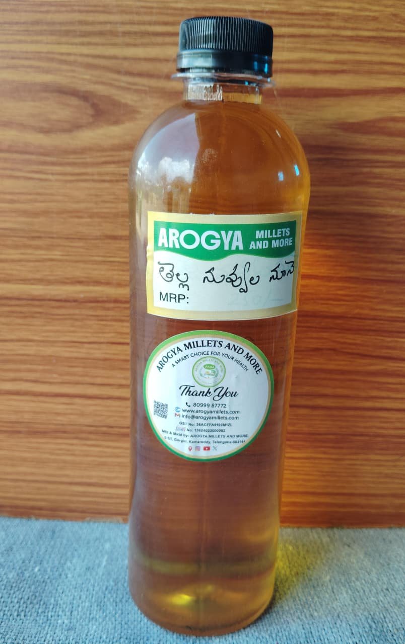 Experience the rich, nutty flavor of our Premium White Sesame Oil (తెల్ల నువ్వుల నూనె), extracted from the finest white sesame seeds. This oil is renowned not only for its delicious taste but also for its numerous health benefits, including high levels of antioxidants and healthy fats. Perfect for cooking, frying, and dressing salads, our sesame oil elevates any dish while promoting heart health and overall wellness. Enjoy the authentic essence of traditional cuisine with this versatile kitchen essential, packed in a convenient bottle for easy use.